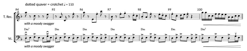 In the version due for release on TNW Music in 2023 the theorbo player, Alex McCartney, improvised an accompaniment based on the composed bass line and indicated chords.